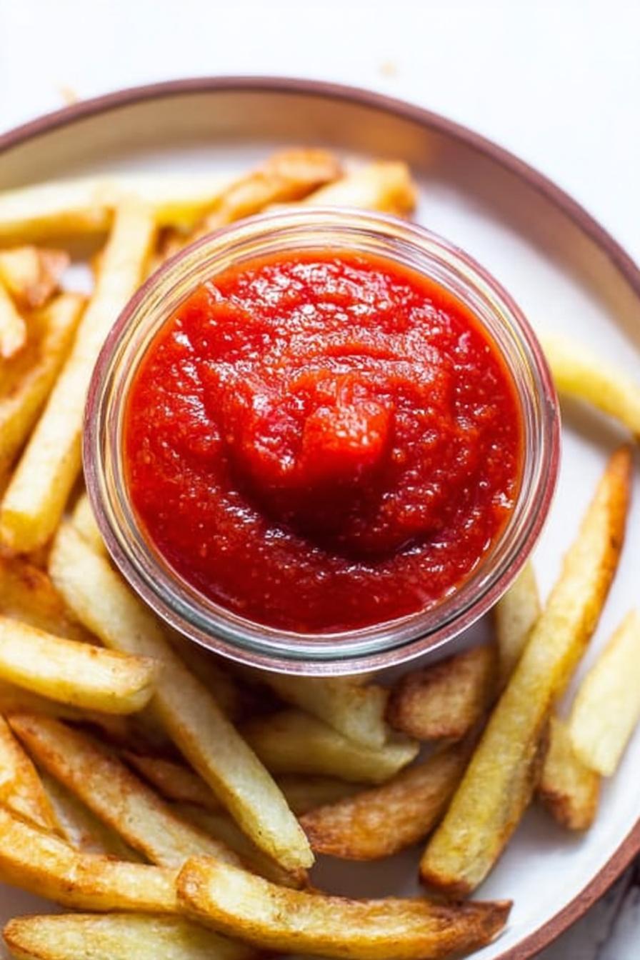 Ketchup feito em casa, temperado e cozido lentamente pra intensificar sabores, com toque extra de páprica defumada no lugar do vinagre branco. Textura cremosa, cor viva, ótimo pra acompanhar fritas, cachorro-quente, e até ampliar receitas clássicas com personalidade. Feito pra cozinheiros que sabem reconhecer o ponto pelo aroma e espessura da mistura, evitando açúcar exagerado e vinagre agressivo. Equilíbrio na acidez, doçura e temperos comprovado em várias tentativas. Uma base versátil que pode ser ajustada conforme o paladar ou o que tiver à mão.