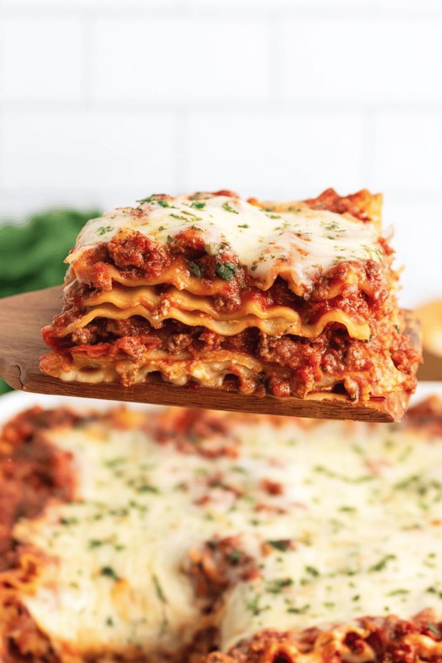 Lasanha com carne moída, molho à base de tomate e mistura de queijos, cozida no forno até borbulhar e dourar. Passa pela pré-cozimento das massas para evitar desmanchar e mistura de temperos italianos, alho e cebola que dão aroma marcante. Leve alteração no queijo ricota por cream cheese para textura mais cremosa e fresco manjericão junto com salsa, que traz frescor e aroma na finalização. Ideal pra servir fatias bonitas depois de descanso. Serve 12 pessoas, com equilíbrio em proteína e gordura para um prato substancial.