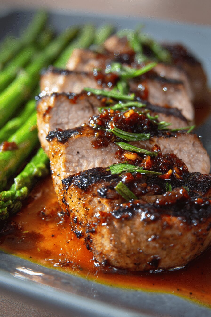 Escolher lombinhos que não sejam muito grandes para o cozimento ficar uniforme. 300 gramas cada é uma boa medida, nada muito pesado pra manter maciez. O azeite deve ser extra virgem para intensificar o sabor. O sal usado é pouco, justamente para não roubar o protagonismo da carne. Troque o alho tradicional pelas chalotas para um toque mais delicado – o alho direto pesa demais na receita. O manjericão substitui o alecrim por trazer frescor diferente e um perfume menos resinento. As ervas devem estar frescas, abafadas junto à carne pra liberar aroma. A geleia de figo pode ser caseira, mas uma boa comprada funciona bem pra textura e intensidade. Os aspargos frescos precisam ser firmes, não murchos; cozimento rápido pra ficar crocante. O molho romesco agrega um toque mediterrâneo, mas pode ser substituído por outro molho de pimentão.