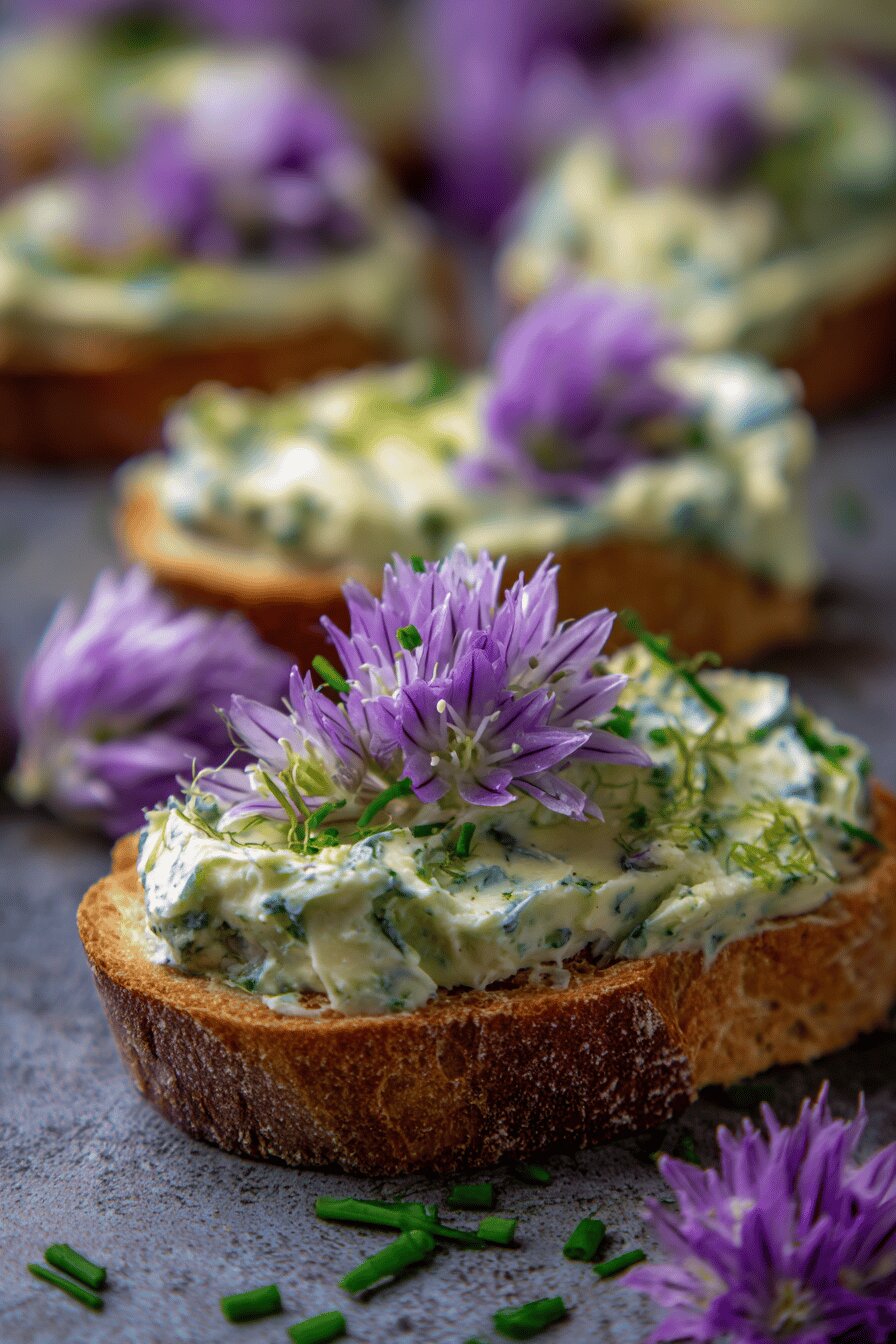 - 💡 Fatiar a manteiga. Use faca quente. Isso facilita o corte. Não deixa a mistura derreter. Pedaços de flores na superfície ficam bonitos. Dicas para servir: Deixe um tempinho fora da geladeira. Facilita ao passar no pão. O sabor se destaca a temperatura ambiente. Use com legumes grelhados ou peixes.