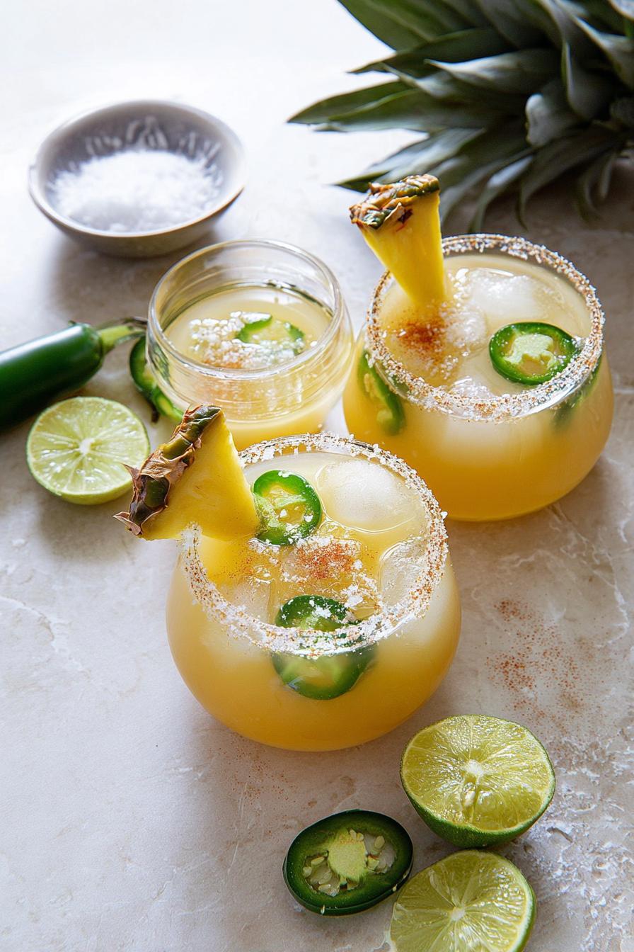 Use abacaxi bem maduro, firme e suculento — evite os muito verdes que deixam o drink sem graça, e os muito maduros que ficam aguados e perdem a textura. Mel de agave pode ser substituído por mel comum ou açúcar mascavo dissolvido em água quente, para manter doçura e textura, embora o sabor final fique diferente, menos neutro. Se não tiver jalapeño, pimenta dedo-de-moça serve, mas com cuidado — o sabor muda e o ardido é diferente. O sal grosso para a borda é opcional, mas recomendo para criar aquele contraste clássico da margarita. Suco de limão sempre fresco, espremido na hora, evita amargor da parte branca e mantém a bebida vibrante. Água com gás é pra quem quiser um toque leve, quase como uma soda, pode ser cortada para melhor intensidade. Tequila é item à parte, caso prefira versão alcoólica — escolha sempre prata e de boa procedência para não estragar o sabor.