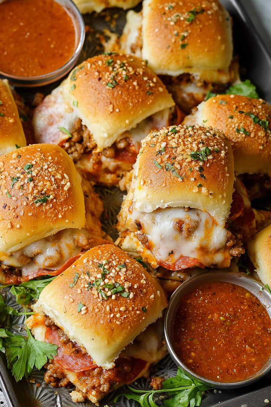 Mini pães estilo pizza, recheados com linguiça e queijos variados, assados até derreter e dourar. Uma opção prática e saborosa para petiscos ou lanches rápidos, com camada fina de molho e toque de manteiga condimentada para crocância no fundo. Combina o tempero da linguiça com toques de parmesão e provolone, finalizado com orégano cítrico. Fácil de preparar, ideal pra churrascos, encontros informais e festinhas, onde a bagunça é parte da diversão.