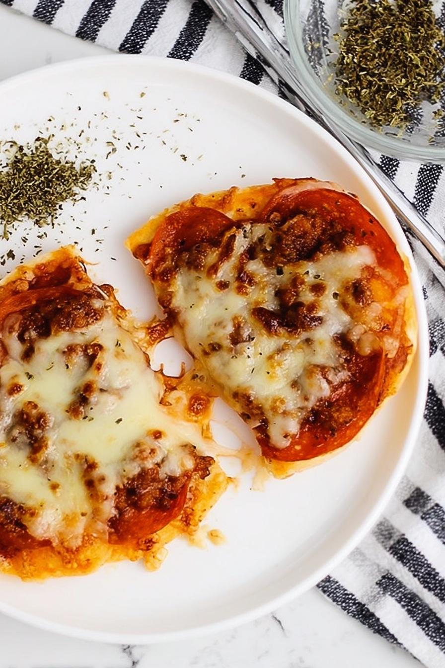 Mini pizzas feitas com biscoitos tipo grands, assadas na airfryer. Camada de molho de tomate, pepperoni, linguiça desfiada, mussarela ralada e tempero italiano. Rápido, prático e crocante, com tempo controlado pelo aspecto visual e textura da massa. Ideal para quem quer petiscar ou fazer um lanche rápido.