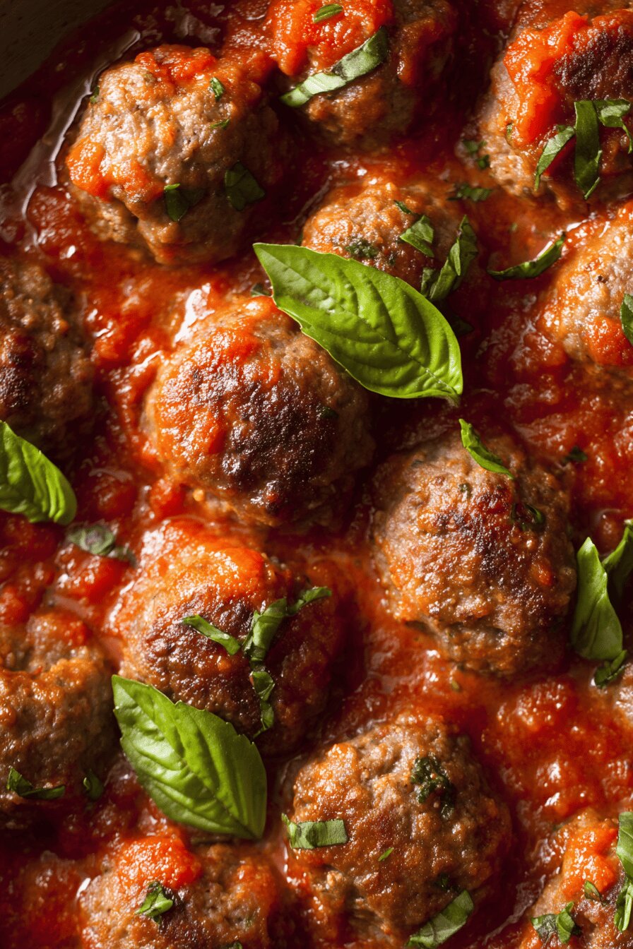Molho robusto de tomates com alho e ervas, almôndegas misturando carne bovina e suína, realçado com ervas frescas. Salsicha italiana fatiada integra o molho, cozinhando lentamente para sabor profundo. Ideal para massas longas. Quantidades ajustadas, ingredientes trocados para toque diferente, preparo um pouco alterado para textura e aroma únicos.