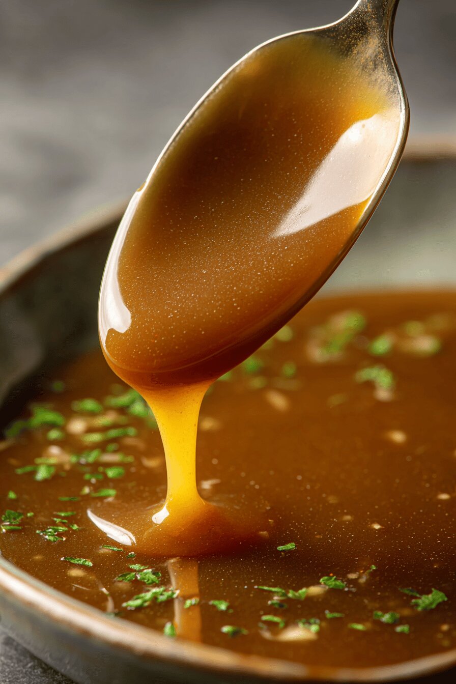Molho escuro tipo gravy, intenso e encorpado, feito com caldo concentrado, farinha torrada e toque de vinho tinto. O segredo está no tempo exato para dourar cebola e alho, garantindo sabor profundo. Ideal para acompanhar carnes assadas, aves e até para regar uma boa poutine, dando aquele umami extra. Versão adaptada com vinho e farinha de segunda passada, garantindo textura e aroma únicos. Fácil, rápido, cheio de nuances. Resolve qualquer situação no jantar que precise de uma sombra saborosa e complexa, sem enrolação nem ingredientes exóticos.