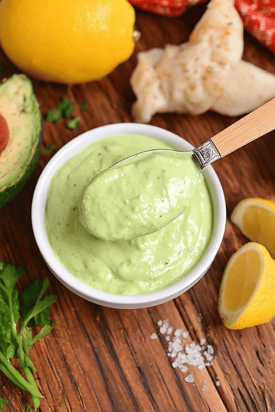 Molho cremoso baseado em abacate com leve toque de alho e ervas frescas; iogurte natural substituído por kefir para um sabor levemente ácido; ajustado para textura ideal com leite de amêndoas; perfeito para saladas, como dip e sanduíches; improvisado para quem tem intolerância à lactose; possível variar coentro por salsinha sem perder a vivacidade; receita rápida e prática com processos sensoriais descritos e dicas para evitar erros comuns.