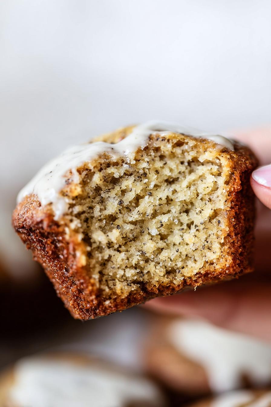 Muffins grandes feitos com bananas maduras amassadas, rum temperado e mistura de especiarias como noz-moscada e cardamomo. Massa úmida e com leve toque caramelizado pela cocção da banana com manteiga e açúcar mascavo. Finalizados com cobertura de açúcar de confeiteiro, manteiga e mais rum para dar aquele brilho e sabor extra. O forno em temperatura baixa garante assado uniforme, sem afundar no meio. Ideal pra quem já tentou pão de banana e não se acertou com textura ou sabor. Receita ajustada pra não errar, mesmo se variar ingredientes ou temperaturas do forno.
