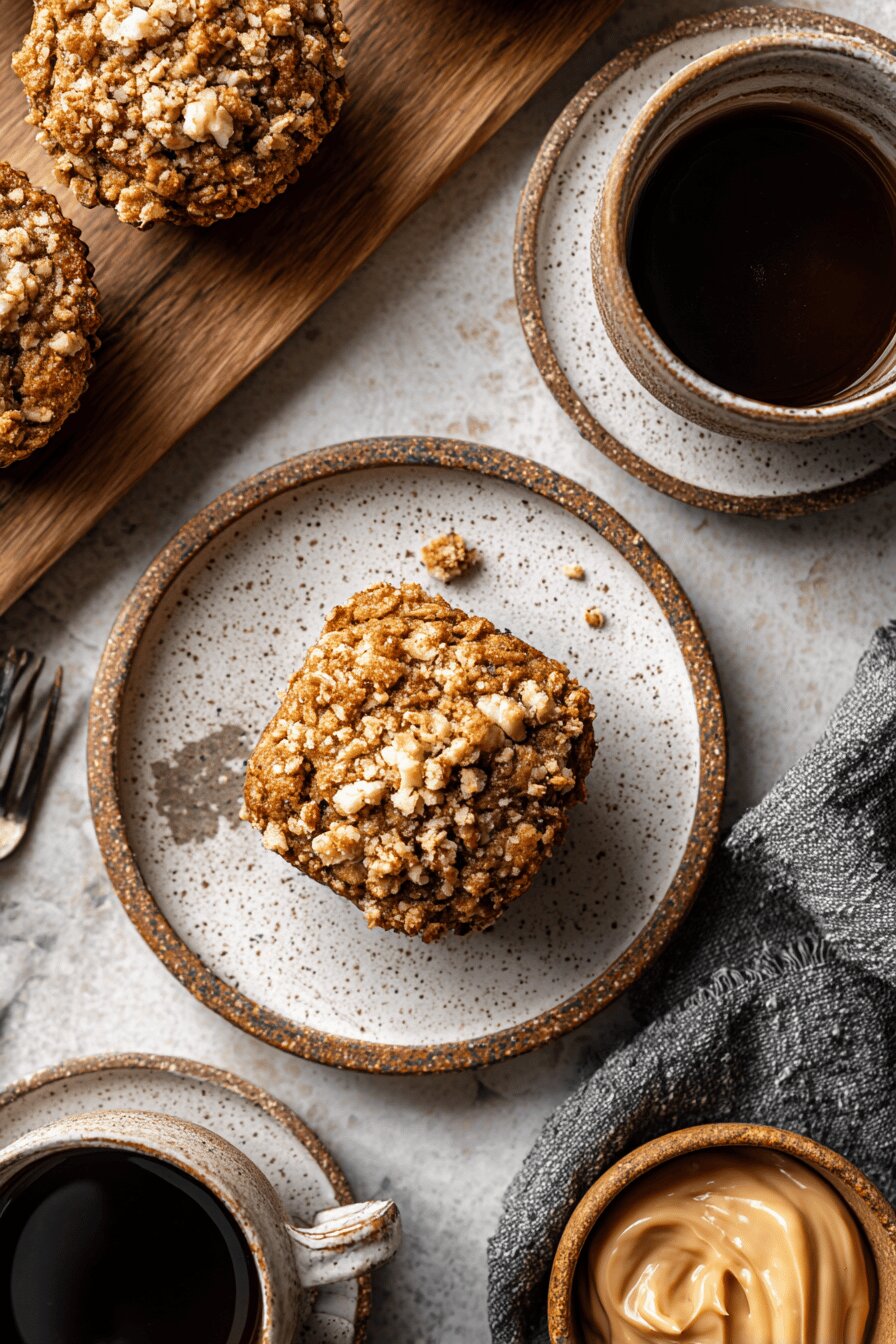 Muffins macios com tâmaras que derretem na boca, um crumble crocante por cima. Sem lactose, sem nozes, receita vegetariana. Adaptei as quantidades para balancear doçura e textura, troquei o bicarbonato por fermento biológico em pó para evitar gosto metálico, e substituí metade da farinha branca por farinha de aveia para mais fibra. Ideal para um café da manhã diferente ou lanche. Dá uma doçura natural e é fácil de fazer, ainda ensina a identificar sinais pro ponto no forno usando cheiro e cor. Combinação massa úmida com crumble crocante funciona pra quem curte contraste. Conserva bem até 5 dias em pote vedado, mas sugiro consumir fresquinho para aproveitar o crumble sem murchar.