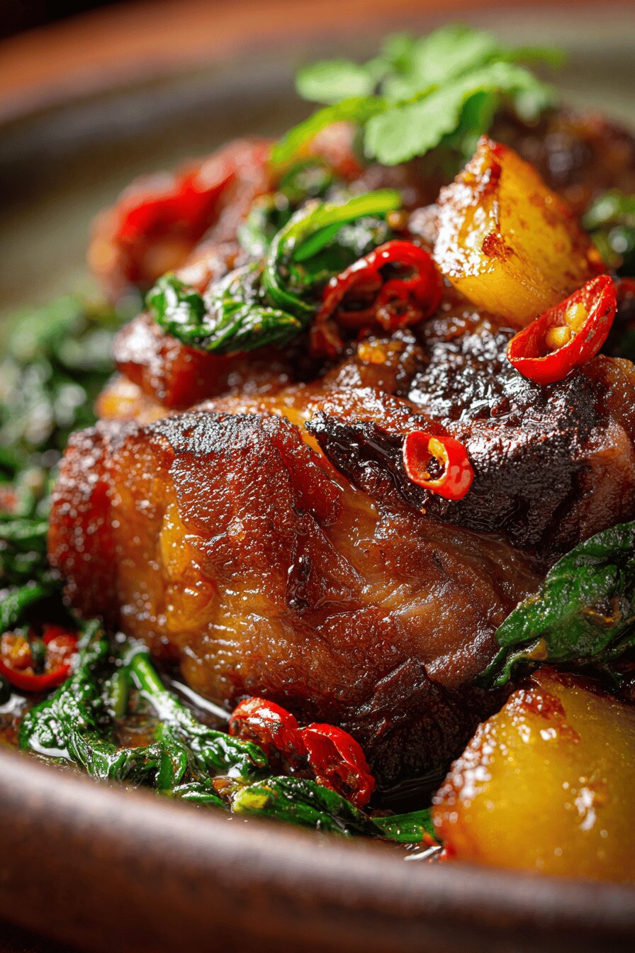 A dica é dourar bem a carne para criar aquela crostinha que mantém o suco dentro da carne durante o cozimento longo. O refogado deve ser feito na mesma panela para aproveitar os sabores. Atenção na quantidade de líquido para que não seque, e dar uma mexida rápida antes de colocar no forno. Cobrir com tampa evita que o prato fique ressecado, mas se usar panela tampada com vidro, cheque 3 vezes as condições. Vire a carne para que o molho penetre por inteiro, use espátula ou pegador para virar sem desmanchar. Retirar as especiarias ao final evita sabores amargos e excesso de picância. Se quiser, uma leve reduzida do molho no fogão após retirada do assado deixa a liga do líquido mais consistente. Pode segurar na paciência, o tempo de forno pode variar, fogo baixo faz mágica, mas mais rápido que isso, carne dura na certa. Solte a mente e se solte para comer com as mãos se quiser. Acompanhamento simples, sem erro: arroz branco de jasmim, brócolis salteados, até farofa, vai bem.