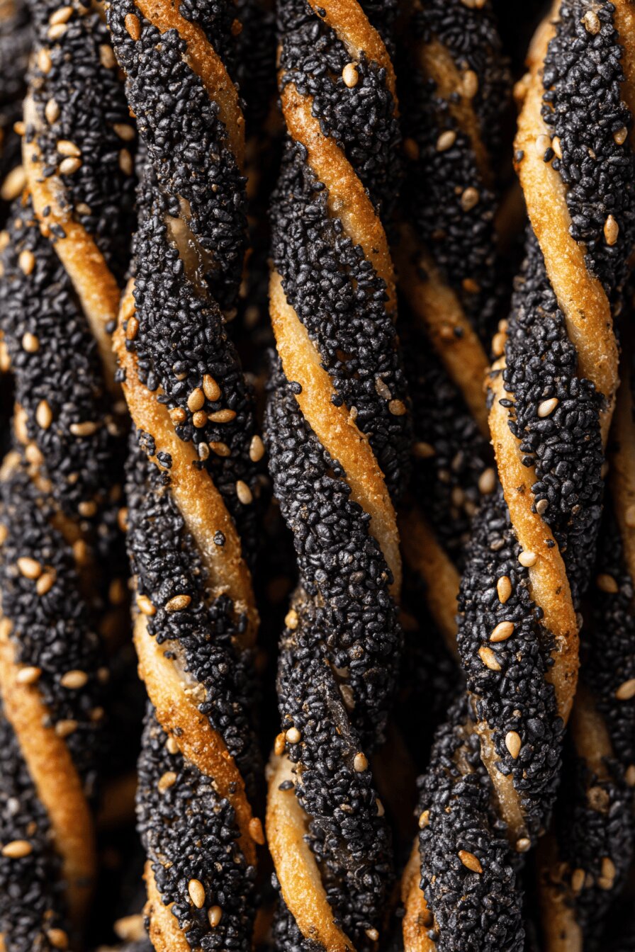 Começar misturando ingredientes secos e só depois líquidos garante uniformidade. Sovar no mínimo 5 minutos é necessário pra ativar o glúten e formar rede elástica, que mantém gás. Deixar crescer em local protegido ajuda fermento agir sem estresse, resultado melhor textura. Antes de cortar, polvilhar farinha evita que grude. Cortar tirinhas finas melhora crocância na hora de assar, evitar muito grossas que cozinhariam por dentro mas não criariam crosta. Passar azeite com pincel é mais eficaz que pincel seco, ajuda sementes grudarem. Assar placa a placa, não junto, para não esfriarem rápido. Não abrir o forno nos primeiros 10 minutos evita murchar. Esfriar sobre grade ajuda preservar crocância e evitar umidade. Guardar em pote hermético conserva textura por dias.
