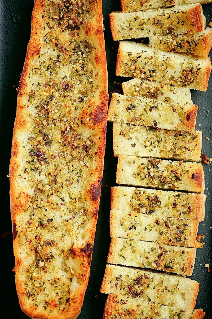 Pão crocante com toque de ervas, alho e manteiga, assado até dourar e finalizado com calor intenso para textura extra. Versão ajustada com redução da quantidade de manteiga e acréscimo de queijo parmesão, trazendo cremosidade e sabor a mais. Passo a passo reorganizado visando textura perfeita e aroma marcante. Indicado tanto para acompanhamento de churrasco quanto para petisco rápido.