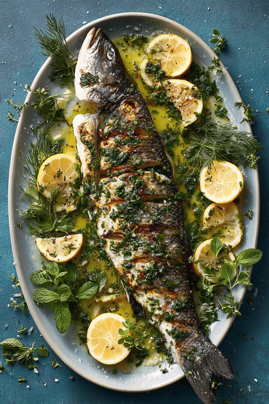 Peixes inteiros temperados com limão, ervas frescas como tomilho, salsinha, endro e erva-doce, além de alho e cebola. Preparados na grelha, com técnica para manter a pele crocante e a carne úmida. Sem glúten, lactose, nozes ou ovos. Foco nos aromas que se misturam no carvão, com toque cítrico e herbal marcante. Tempo total aproximado 23 minutos, incluindo preparo e cozimento. Indicado para quem curte uma experiência rústica, sabor autêntico e é prático na churrasqueira ou chapa.