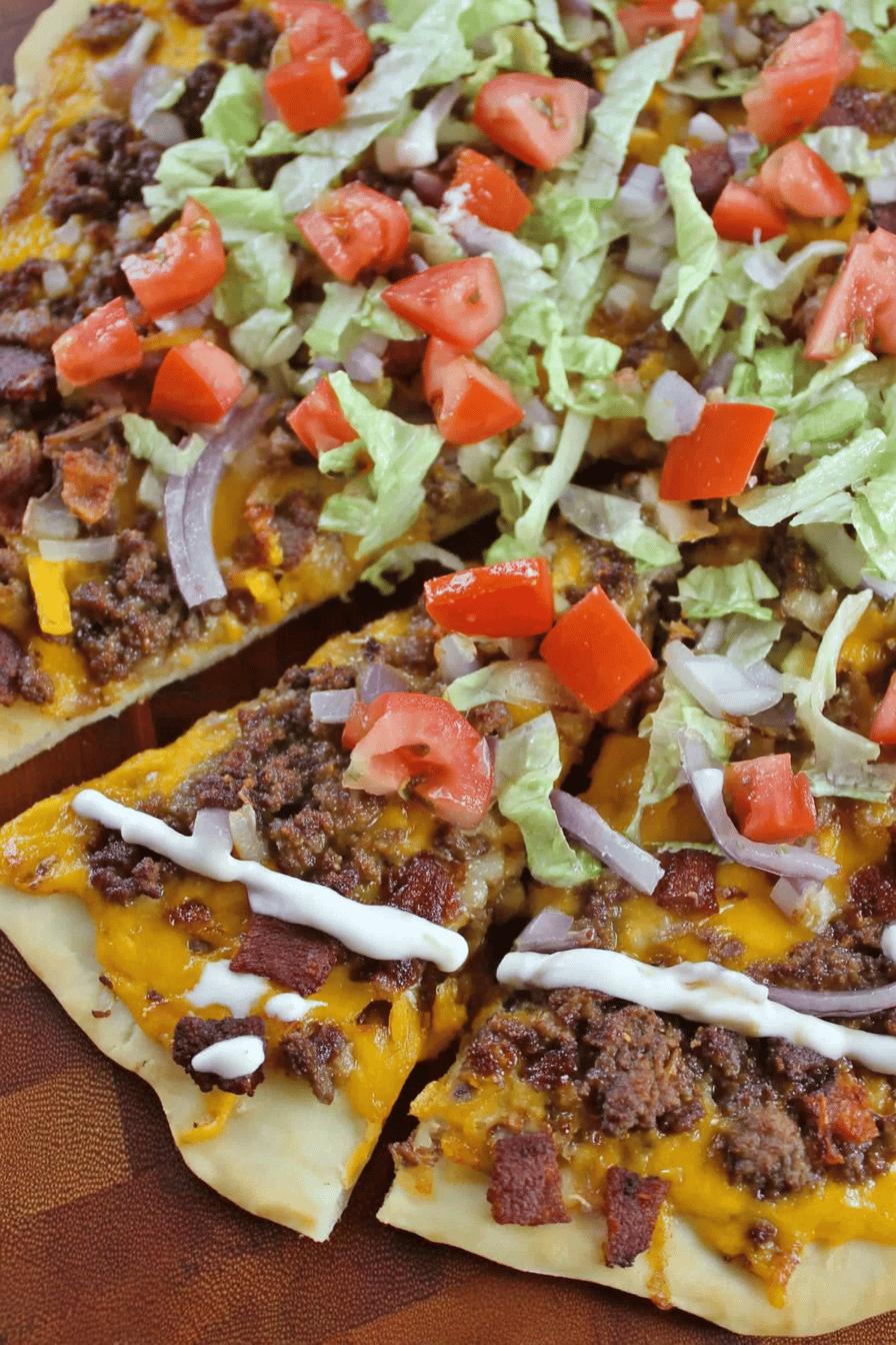 Nem todo dia dá pra ficar naquele tradicional cheeseburger de hamburgueria, mas a vontade desse sabor reconfortante não deixa escapar. A ideia aqui é trazer o espírito do lanche numa pizza rápida, fácil, que tem aquele toque caseiro mas sem perder o charme. O cheddar derretido, a carne suculenta, bacon crocante e a frescura do tomate e alface criam uma combinação que lembra momentos de festa, reunião de amigos, e churrasco que vira noite. Já tentei versões com outros queijos, tipo muçarela, ou sem bacon, mas a junção desse trio clássico sempre ganha mais atenção. A técnica de usar o saco plástico para decorar molhos deu até pra deixar a pizza mais divertida na mesa, algo que aprendi após muitos testes com garfos e colheres que bagunçavam tudo.