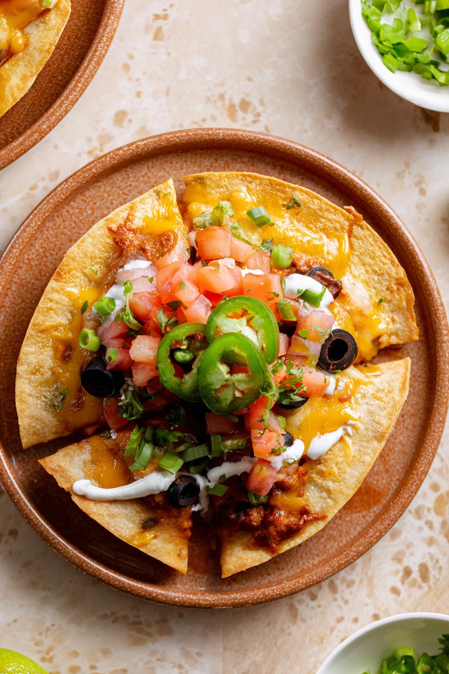 - Sirva cortado em quartos. Use temperos frescos, coentro ou cebolinha para um frescor herbal, limão espremido para reduzir a gordura, pimenta jalapeño para calor extra. Uma pitada de queijo feta pode substituir e dar um toque punchy diferente. Se não tiver forno, termine na frigideira tampada, fogo baixo, deixe o queijo derreter devagar. Curti usa mais queijo e molho caseiro, já tentei com feijão preto em vez de refrito – muda textura. Caso não tenha tempero pronto, faça mistura com cominho, páprica defumada, alho em pó, pimenta chili e um toque de canela para realçar sabores.