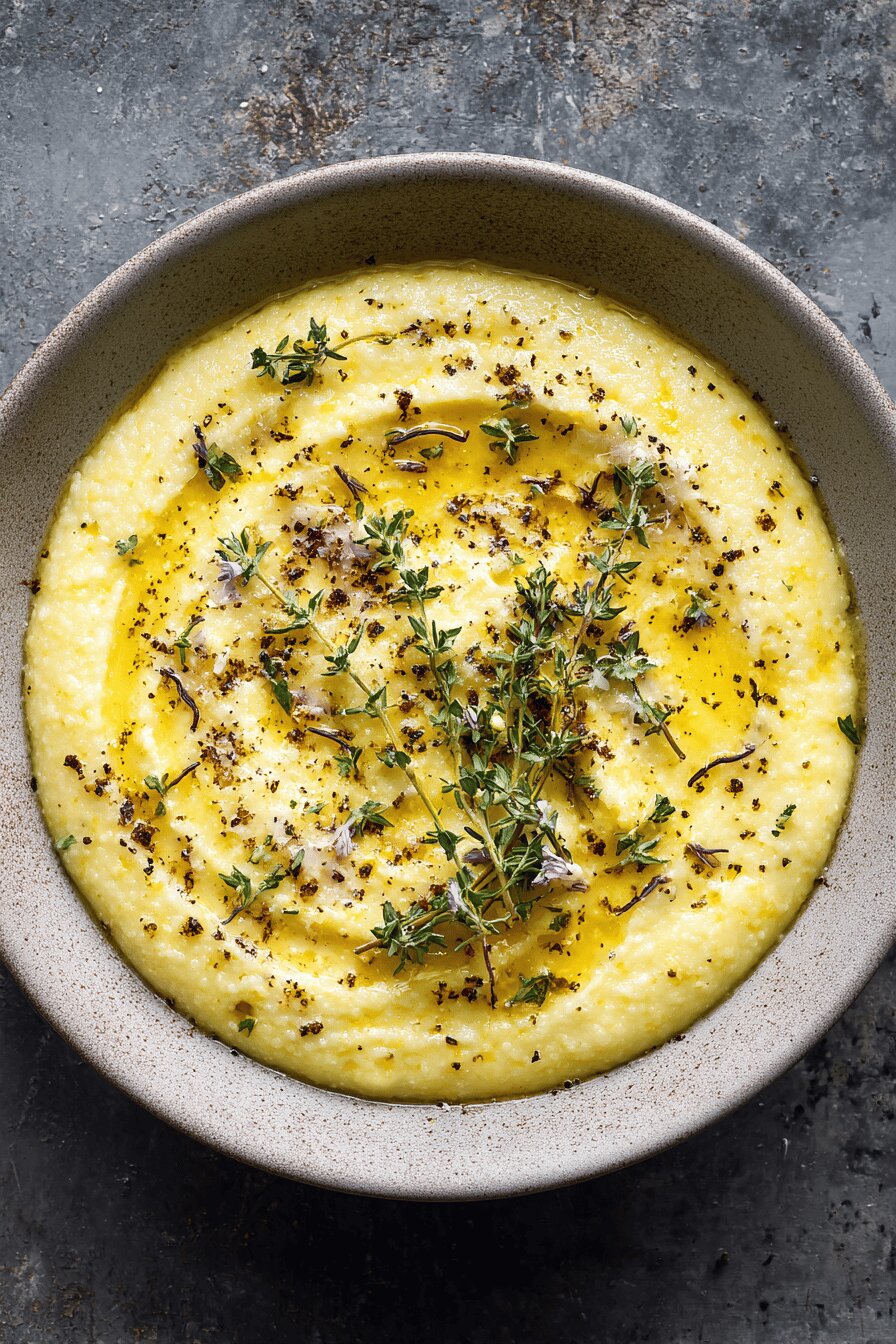 Polenta rápida na frigideira, integra queijo coalho com toque de ervas, textura cremosa, finalização rápida. Usando caldo de legumes para substituir caldo de galinha, ideal para vegetarianos. Alho dourado no azeite dá aroma intenso, ajuste na polenta para evitar empelotamento. Um pouco de pimenta-do-reino e tomilho fresco quebrou a monotonia, ervas são o segredo para não cair na mesmice da polenta simples.