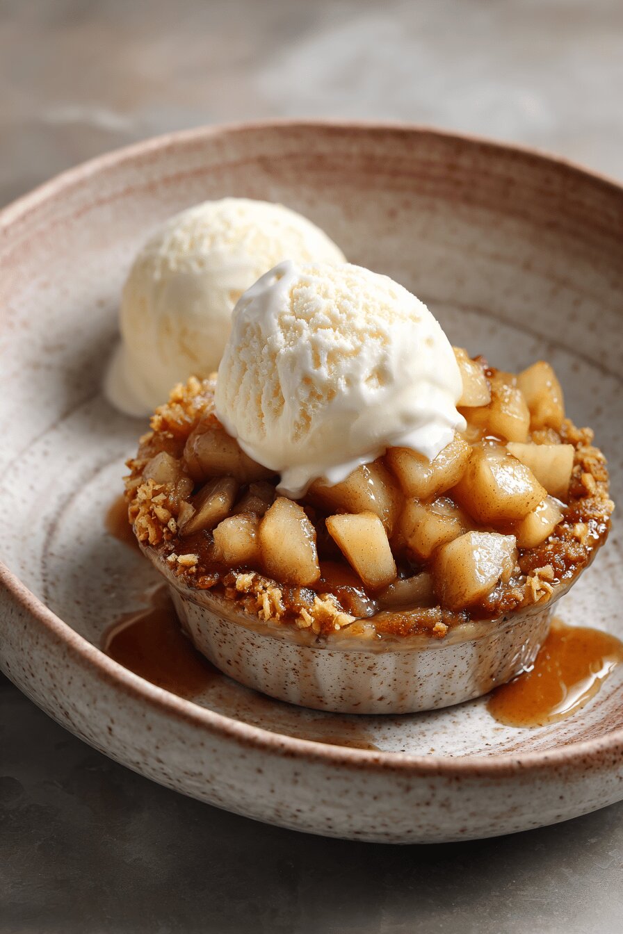 - Servir acompanhado de sorvete de creme, que cria contraste de temperatura e textura.