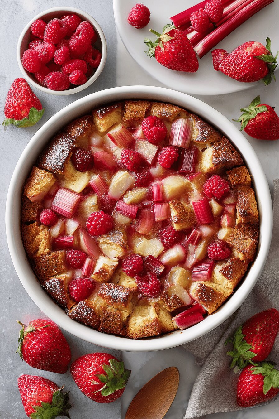Combinação vibrante de frutas frescas com massa leve e saborosa. A mistura de morangos, framboesas, ruibarbo e maçãs cria uma base fresca e ácido-doce, equilibrada pela massa macia que cresce na cozedura suave do forno. Troque o ruibarbo por abacaxi para sabor mais tropical, e ajuste açúcar caso use frutas mais maduras. O cozimento fino faz a diferença no resultado final: massa dourada sem que a fruta vire purê. Ideal para sobremesas em dias quentes, surpreende no aroma e textura com variações simples. Aprenda a usar o ponto da crosta e fervura da fruta para timing certeiro. Presença na mesa, conforto e rusticidade que dificilmente decepcionam.