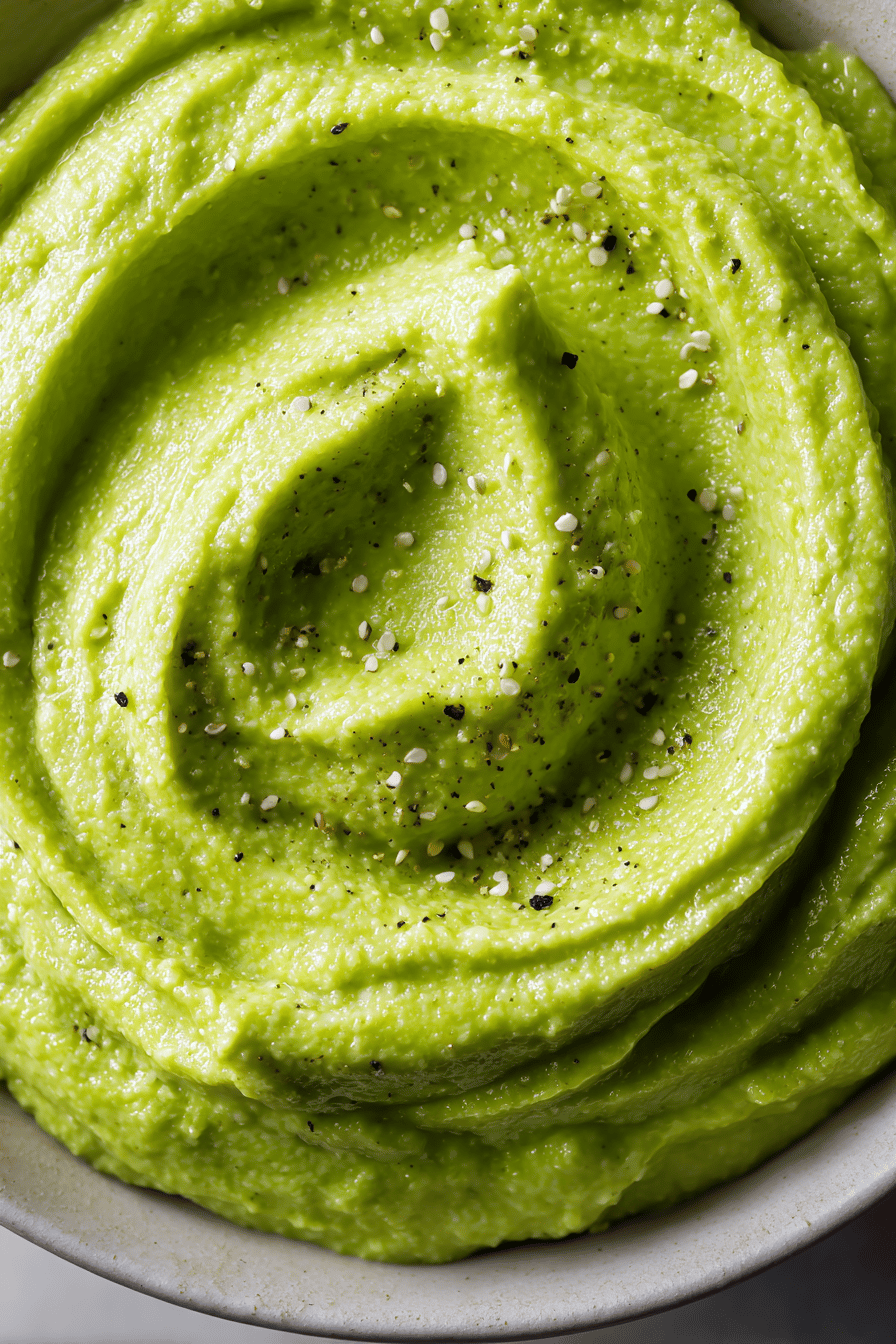 Purê feito com 1,4 litro de brócolis cozido no vapor, alho confitado assado no forno por 50 minutos, azeite de oliva, sal e pimenta. Receita vegana, sem lactose, sem glúten, sem ovos e sem nozes. A combinação do alho doce com o brócolis cria uma textura cremosa e sabor marcante. Serve 6 porções, ideal para entradas ou acompanhamentos de pratos robustos como carnes de caça.