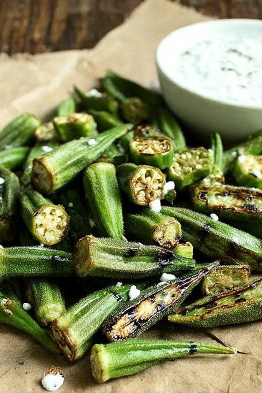 - Sirva o quiabo quente acompanhado do ranch de jalapeño para mergulhar. O contraste do picante cremoso com o sabor tostado do legume na brasa funciona demais.
