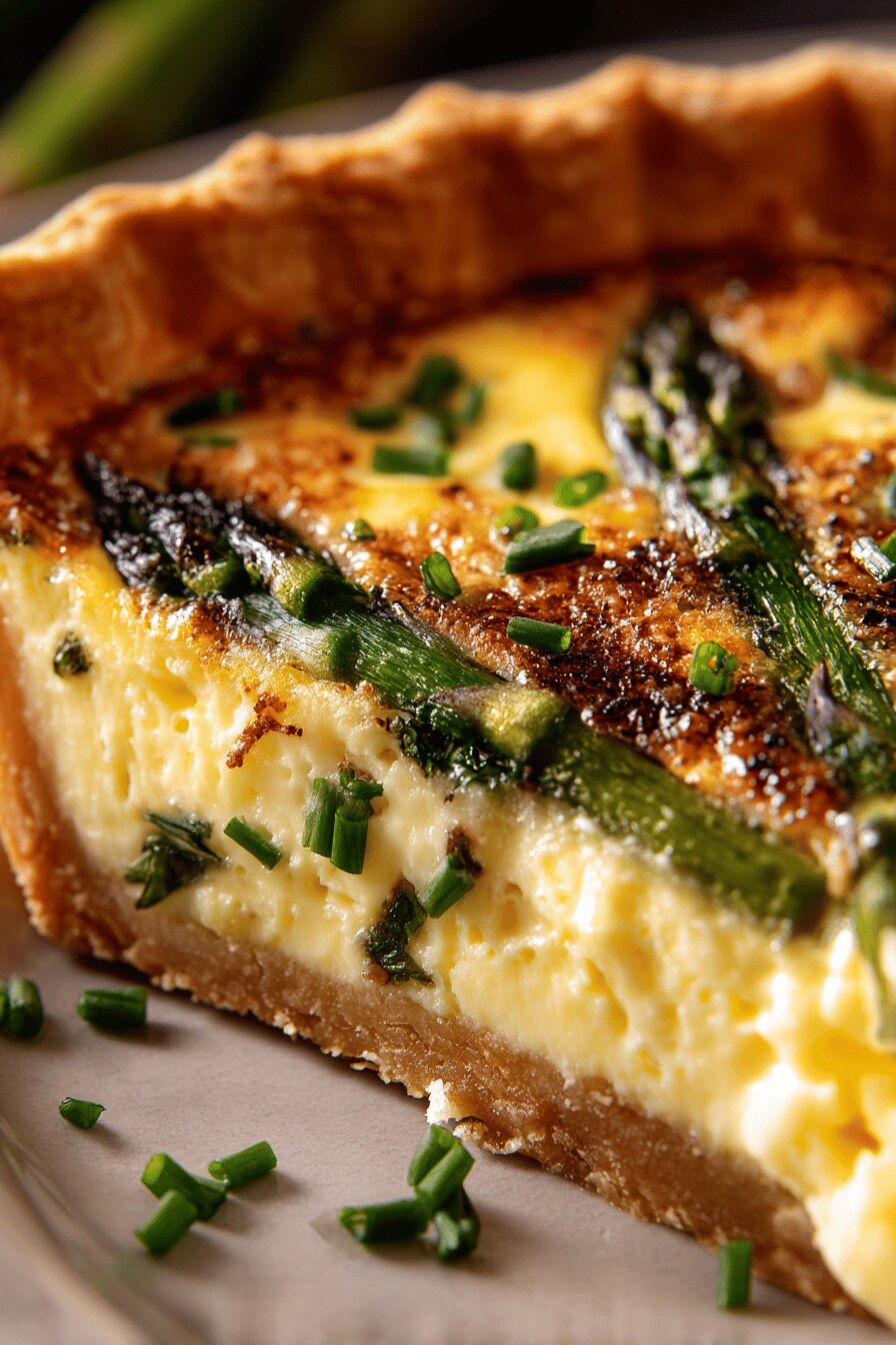 Uma quiche com aspargos frescos e queijo minas padrão, usando massa brisée leve com toque de azeite. A receita modificada oferece equilíbrio entre cremosidade e textura firme, ideal para servir quente ou fria. A combinação inovadora e o preparo simples fazem dessa quiche uma opção versátil para almoço ou lanche, respeitando o sabor dos vegetais e o frescor do queijo.