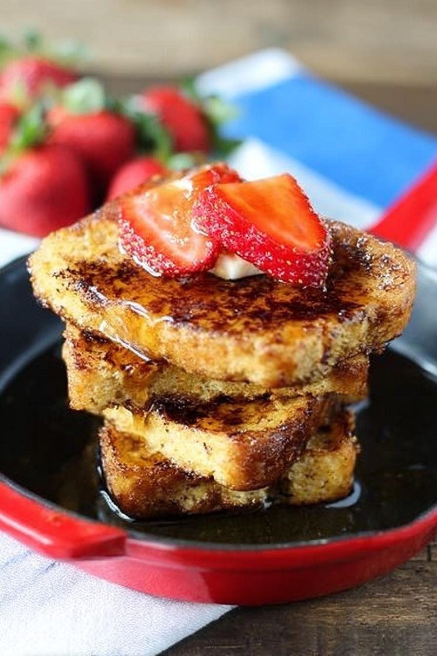- Sirva com maple syrup, frutas frescas como morango ou mirtilo, e um pózinho de açúcar de confeiteiro pra dar charme - o açúcar faz o contraste visual e a delicadeza doce na boca.