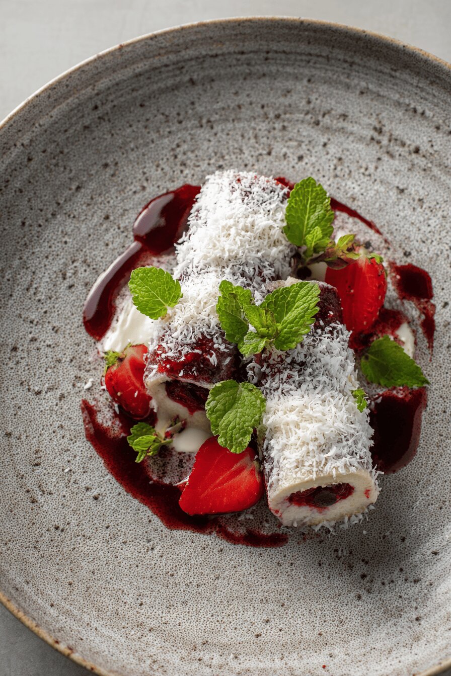 Rocamboles de frutas vermelhas carregam uma história pessoal. Após vários testes, descobri que substituir o ingrediente principal por framboesa deixa o sabor mais vibrante e menos ácido que as camerises originais. O ponto da meringue é crucial, e misturar a calda morna evita que os ovos cozinhem instantaneamente, garantindo maciez. A adição de gengibre fresco surge da curiosidade de equilibrar o doce intenso e proporcionar um frescor inesperado que combina com a textura do coco tostado. O segredo está na montagem: enrolar ainda morno, sem pressa, para evitar rachaduras. Bolo e chantilly precisam de atenção para que o resultado firme, cremoso e com crocância, sem açúcar em excesso, conquiste paladares.