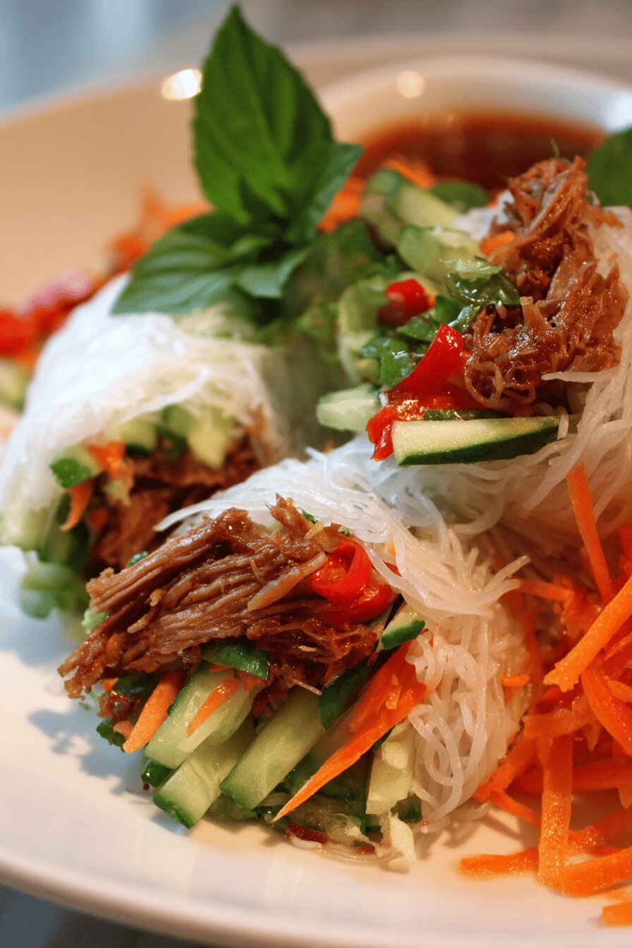 Rolinhos frescos com pato confit, legumes crocantes e ervas frescas, envolvidos em galetes de arroz. Complementados por molho hoisin suavizado com água. Receita fácil, sabor única, substitui ingredientes clássicos para dar um toque brasileiro. Tempo total ajustado para precisão. Quantidades adaptadas para rendimentos ideais, evitam desperdícios. Técnicas simples e dicas para evitar galetes quebradiças e recheios murchos. Sabor entre a crocância dos legumes e o suculento do pato desfiado. Ambiente perfumado pela mistura de ervas e especiarias da culinária asiática, com uma pitada de brasilidade. Aprenda a preparar com truques visuais e texturais para garantir resultado sempre consistente.