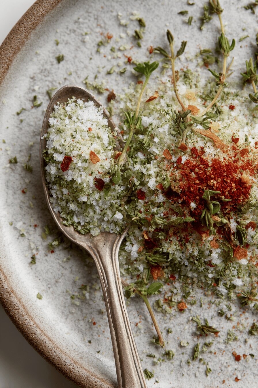 Sal temperado. Esqueça aqueles prontos com conservantes. Nada de lactose, glúten ou ovos aqui. Aroma das ervas secas que a gente sente logo no cheiro. Salsa e orégano clássicos, mas entra também um toque de alecrim, esquecidos pela maioria. Sal grosso, para textura gostosa na boca, quebra o paladar. Um twist brasileiro com cúrcuma e gengibre para aquele algo a mais. Fácil de fazer, leva 6 minutos só, rápido pra quem tem pressa. Ideal pra deixar a pipoca caseira mais show, salpicado nas batatas, pepino, até na carne de panela ou frango grelhado. Um tempero democrático, que fica guardado, esperando a hora de dar sabor na correria do dia a dia. Parece simples, mas faz falta no armário. Pote com etiqueta simples, mão na massa, pouca receita. Esse sal ranch tropa seca. Muita gente nem sabe, mas fica top em pratos brasileiros, prova a gente.