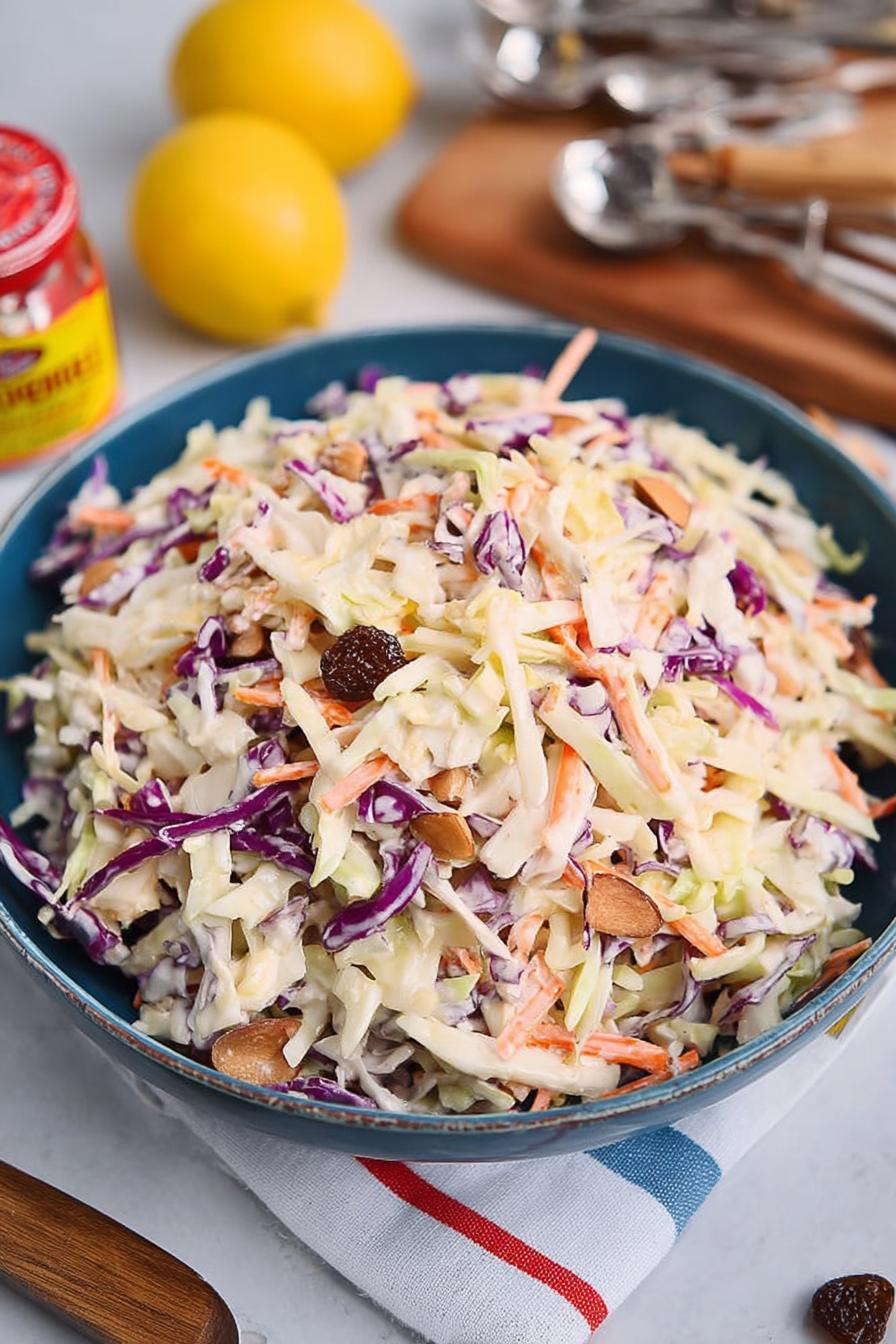 Saladas do tipo coleslaw sempre foram uma aposta minha quando queria algo rápido e refrescante, especialmente nos dias em que o calor pede algo leve. O uso do iogurte natural no lugar da maionese traz leveza e uma acidez natural que não pesa, evitando aquela sensação enjoativa que recebo de molhos industrializados. Outro ponto é a combinação das passas e das nozes, que dá uma crocância diferente, rompendo a suavidade do repolho macio. Encontrei facilidade no preparo, apenas misturar, sem cozinhar ou esperar horas para marinar idealmente. Já tentei incluir maças picadas, que combinam com o limão, mas acho que podem amolecer demais se deixar muito tempo na geladeira. Para mim, o equilíbrio está nesse molho bem temperado e uma mistura crocante dos nuts.