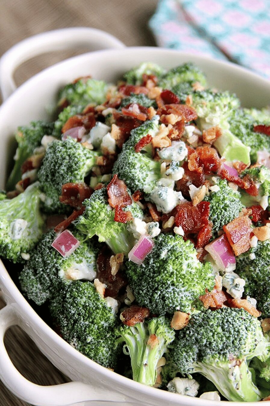 Salada fria que mistura brócolis crocante, cebola roxa, queijo gorgonzola esfarelado e bacon crocante. Molho cremoso com maionese e vinagre de maçã, temperado com sal e pimenta para equilibrar. Refrigera para intensificar sabor. Serve cerca de 5 pessoas, combina textura e sabor marcante com toque ácido e defumado. Pode ser servida como acompanhamento ou prato leve, fácil de preparar, ideal pra dias quentes. Substituições indicadas para quem prefere queijos menos pungentes e opções para ajustes rápidos na cozinha.