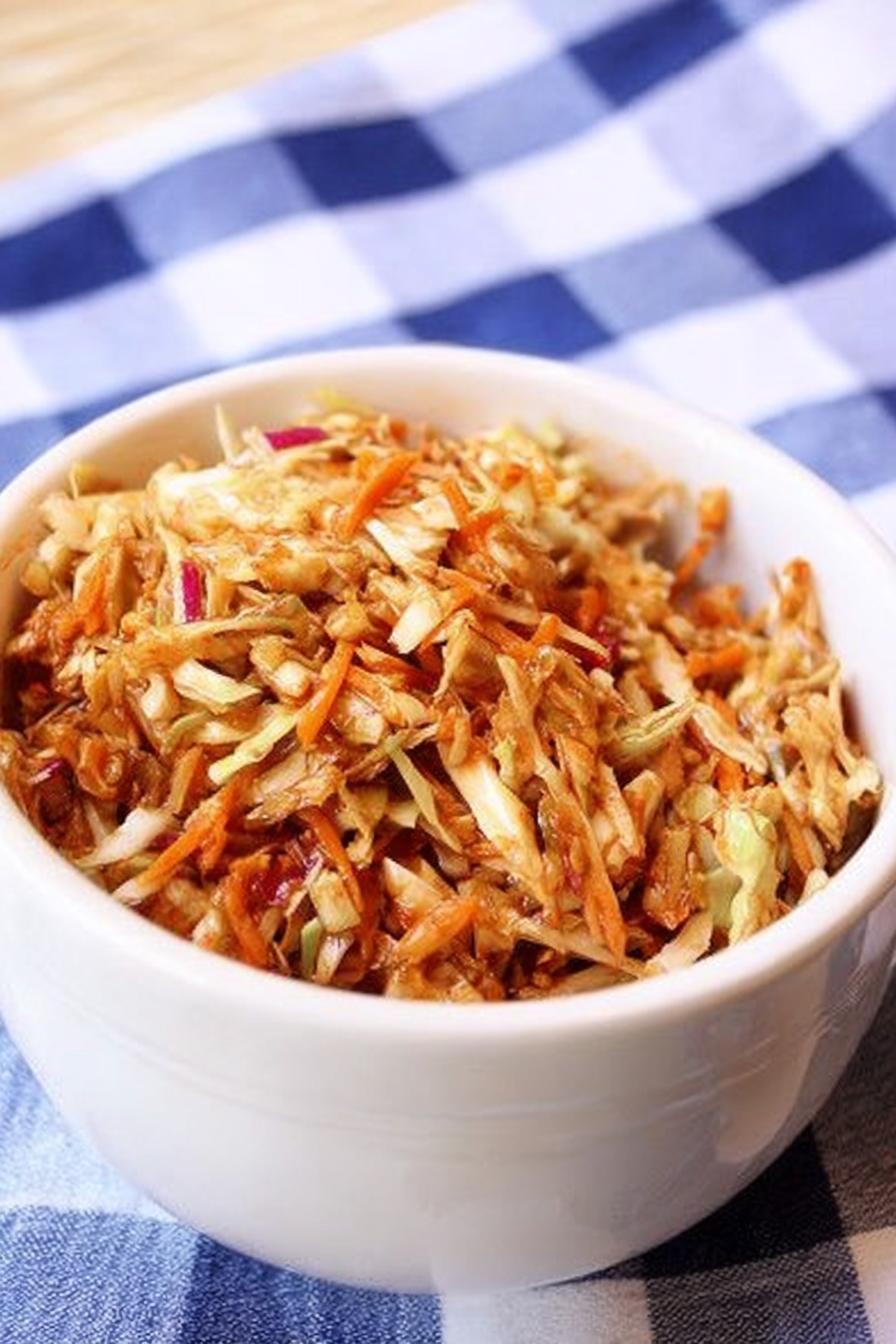 Um mix crocante de repolho com um molho levemente adocicado e ácido, que mistura barbecue, mostarda e vinagre. Rápido de preparar, concentra texturas e sabores contrastantes. Ideal pra quem gosta de acompanhar churrascos com algo refrescante, mas que não perde a personalidade. A combinação usa ingredientes comuns, fácil de ajustar pra dar um toque pessoal, substituindo bar-b-que por molho caseiro ou mostarda amarela por dijon, por exemplo. O segredo está no equilíbrio ácido-doce e na crocância do repolho fresco, que não deve murchar.