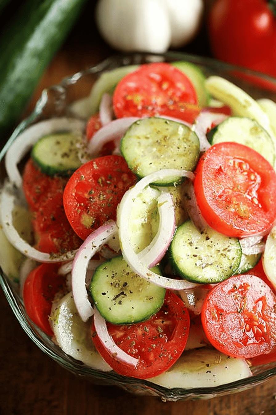 Combinação fresca com pepino crocante, tomate suculento e cebola levemente adocicada. Molho agridoce feito com vinagre, azeite, açúcar e pitadas de água para equilibrar. Ajuste simples para deixar tudo mais suave e com sabor marcante, ideal pra dias quentes ou como acompanhamento versátil no almoço.