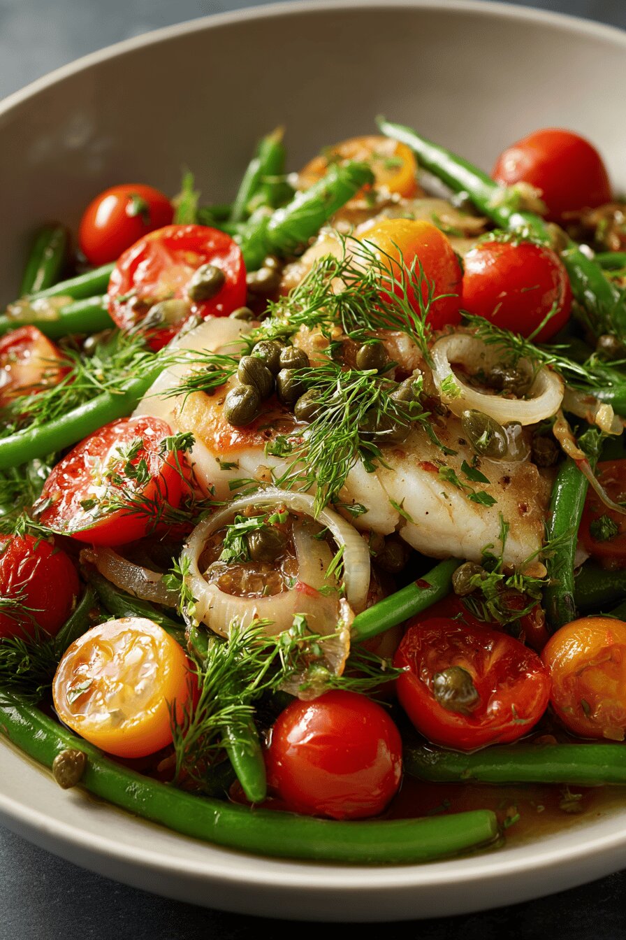 - 💡 Na hora de misturar, mexa devagar. O peixe não deve se desmanchar. Foque em deixar a vagem e os tomates envolvidos. Textura é tudo. Menos é mais. Não faça pressa. Finalizar com coentro e limão traz leveza.