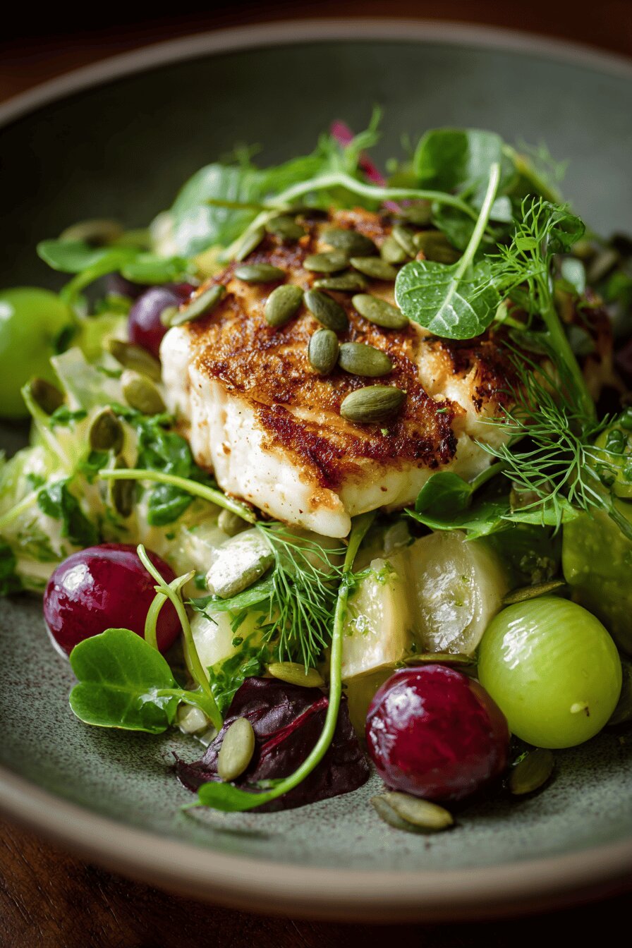 - 💡 Ervas frescas sempre são melhores. A erva-doce não precisa ser em excesso. Um terço do bulbo serve bem. Rúcula dá crocância. Melhor que alface. Uvas vermelhas cortadas ao meio adicionam doçura. Fruta combina com peixe. Limão siciliano é pra frescor. Menos ácido. Pode usar laranja pra variar.