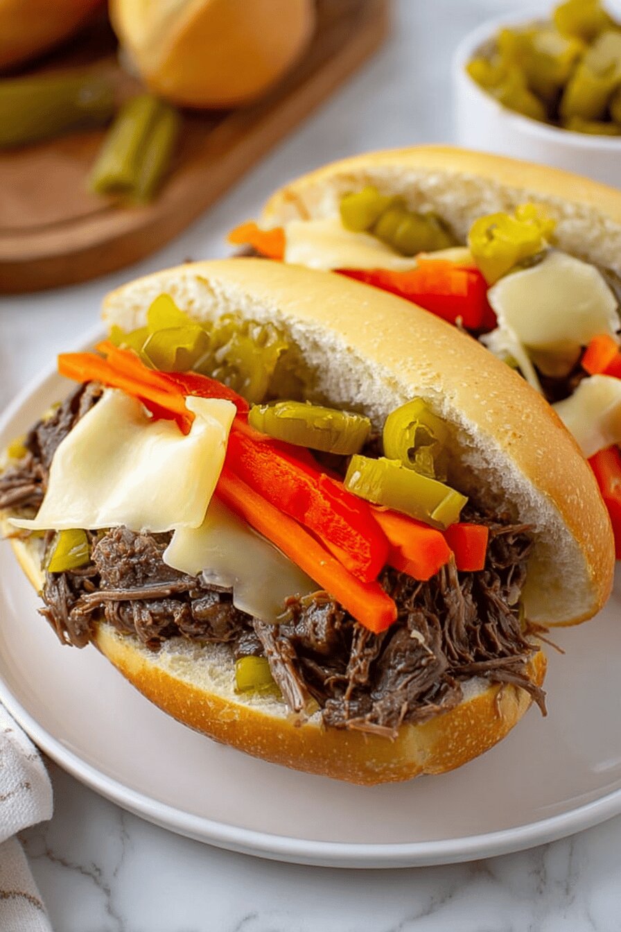 Carne bovina cozida lentamente com tempero italiano e pimenta pepperoncini, montada em pão macio, com queijo suíço e giardiniera. Combinação de texturas, sabores intensos e suculência que se equilibra com o azedinho das pimentas, tudo cozido até a carne ficar na textura perfeita para desfiar. A preparação envolve controle visual e tátil mais do que tempo exato, garantindo um prato adaptável à rotina corrida. Uma versão com toque especial para fugir do trivial.