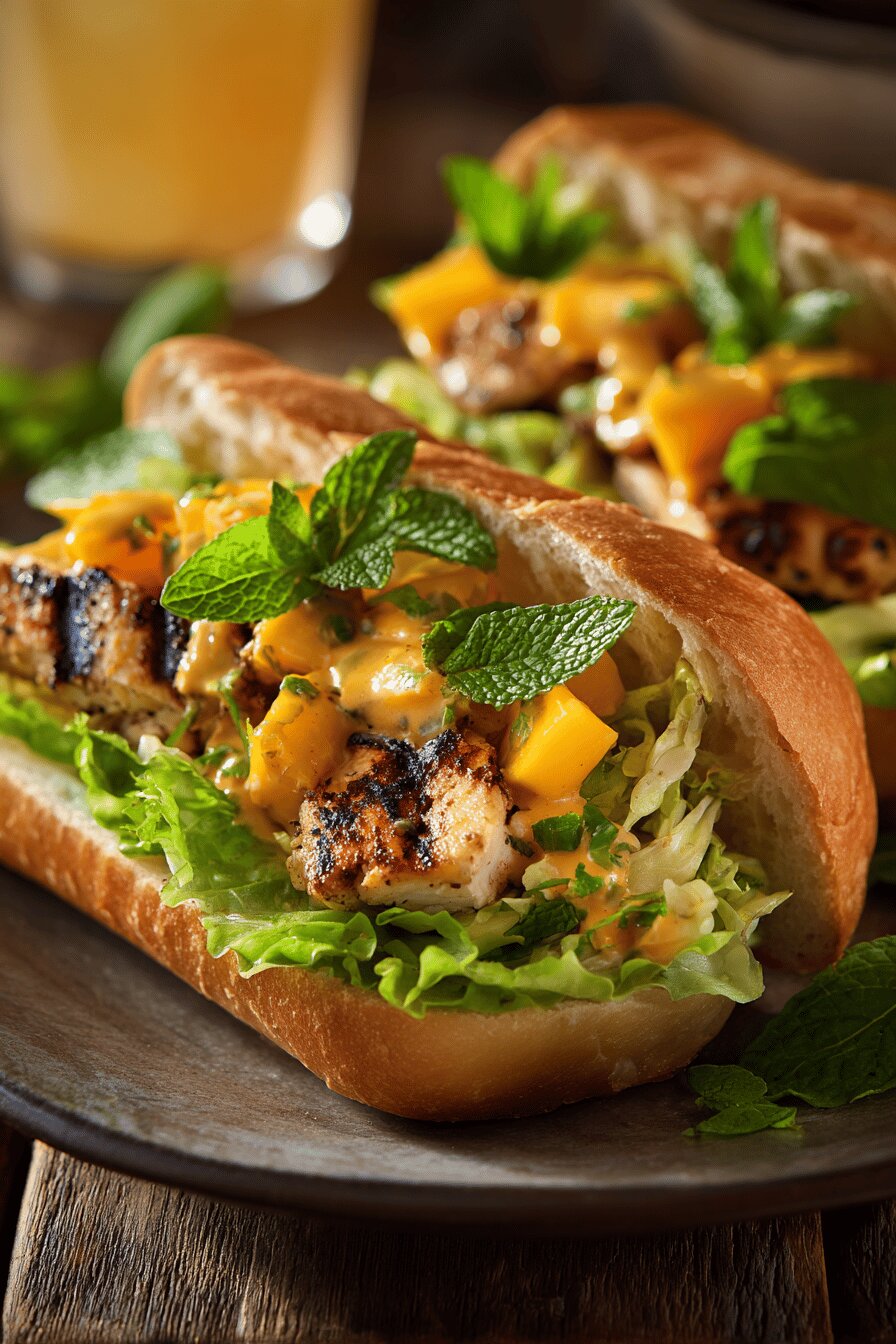 Uma combinação inusitada de frango grelhado, manga fresca e um toque de curry suave dentro de pães italianos alongados. Iogurte turbinado com ervas para um molho cremoso e aromático, que garante suculência e frescor. Fácil de montar; o contraste doce da manga com o tempero do curry cria personalidade no prato. Sem lactose, sem ovos, sem ingredientes que causem alergias comuns. O preparo leva pouca prática e resultados surgem no cheiro do frango grelhado, na textura crocante da alface e na delicadeza das ervas picadas. Troque ou adapte conforme preferência e disponibilidade dos ingredientes. Cozinha com intenção, olhos e toque, nunca apenas por tempo.