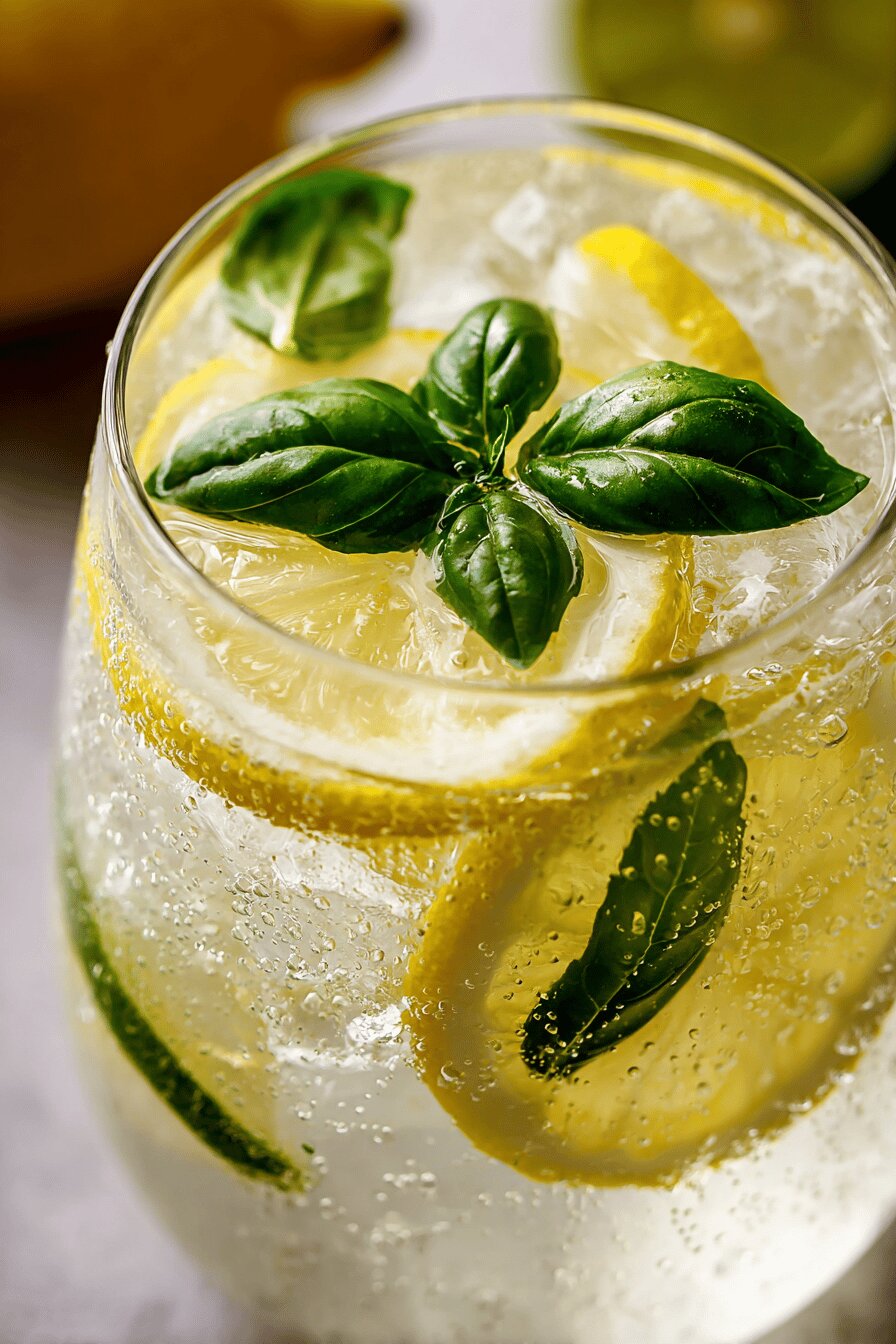 - 💡 Decoração faz efeito. Manjericão é diferenciador. Aroma herbal combina com cítricos. Uma folha ou duas, não precisa mais. Use copos transparentes. Melhores visuais servem em vidro. Sugestão de servir numa jarra maior. Assim, todo mundo pode se servir. Evite copos muito altos, melhores os baixos. E atenção ao gelo. Coloque bastante. Isso ajuda a manter a bebida fresca por mais tempo. Lembre de misturar antes de cada copo.
