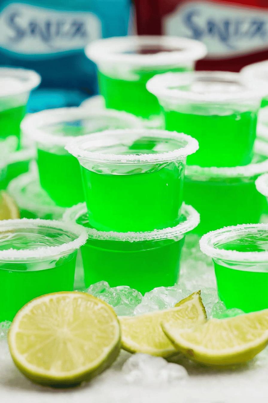 - 💡 Usar sal grosso na borda faz diferença. Coloca numa tigela e mergulha só a borda no xarope. Perfeito. O sal tem que grudar sem escorregar pra gelatina. Se escorregar, a aparência fica estranha. O limão em cima serve como enfeite e traz acidez. Não esquece disso. Copinhos com 60ml ajudam a ter uma medida correta. Não faz bagunça.