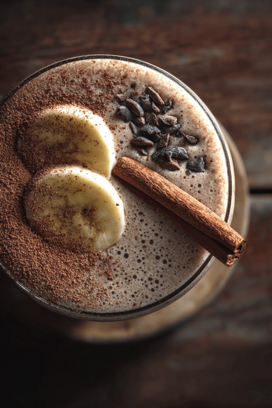 Banana firme, abacate maduro cortado. Gelo pra refrescar, bafo frio no verão. Bebida vegetal de amêndoas e castanhas, rica em proteína. Cacau amargo, sem açúcar, da boa. Melaço escuro ou agave, doçura natural. Canela e noz-moscada pra esquentar por dentro, pimenta dedo-de-moça na medida pro inesperado. Tudo na boca, textura densa que lembra mousse, mas refrescante. Ligeiro, nutritivo, sem lactose, vegano e sem glúten. Dá pra improvisar com frutas, trocar melaço por melado. Uma bomba antioxidante, energia boa pra começar o dia ou matar preguiça da tarde. Simples, direto, no liquidificador. O que sobra? Só sujar o copo. E nem limpar dizer que demora. Vai, bate, bebe, sente a diferença.