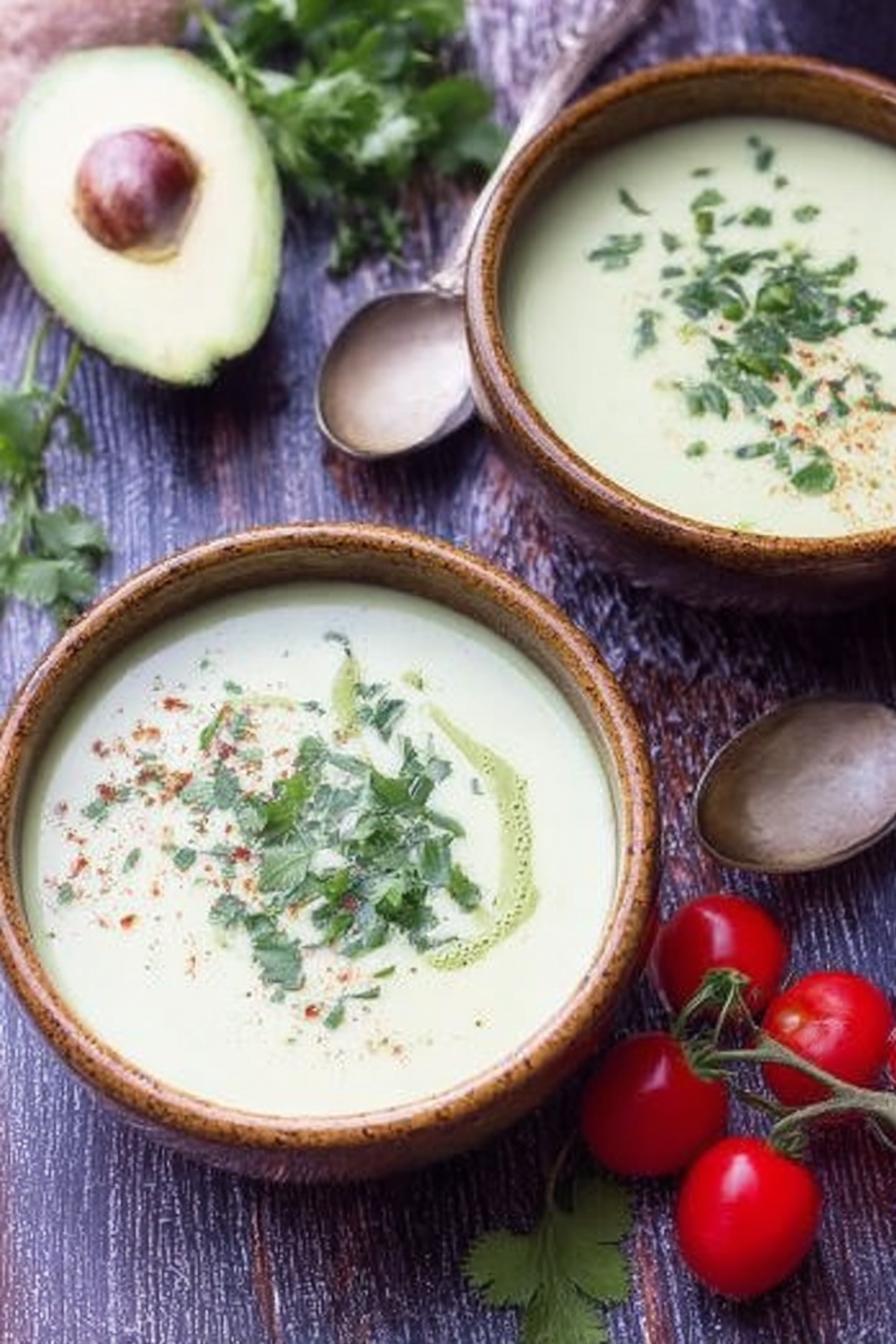 Uma sopa cremosa feita com abacate fresco, caldo temperado, creme e iogurte, finalizada com coentro picado. A combinação traz textura aveludada e sabor leve com toque herbal. Fácil de preparar, ideal para dias de calor ou entrada leve. Usa toque de limão siciliano no lugar do iogurte tradicional para dar frescor, além de manjericão substituindo o coentro, oferecendo outra nuance aromática. Serve 4 pessoas, bom rendimento e ingredientes simples. Tempo total aproximado de 32 minutos, incluindo preparação e cozimento suave. Que tal experimentar diferente, mas clássico? Abacate não é só guacamole, viu.
