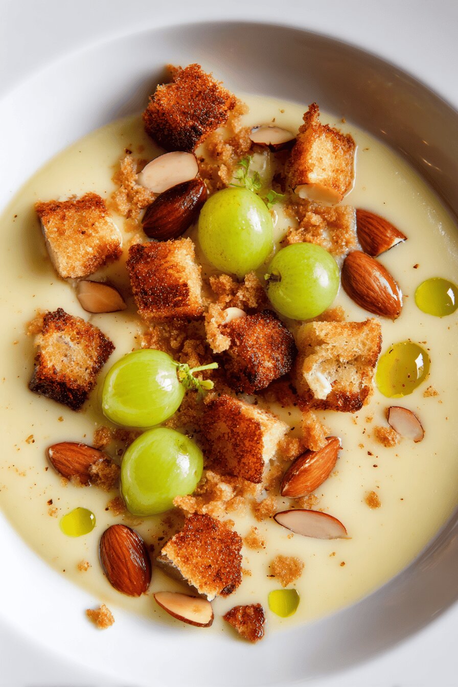 Usar castanha de caju em lugar das amêndoas é mais acessível, fácil de encontrar e tem cancelado o custo alto das amêndoas. Fatiar e tostar ajuda a liberar o sabor na entrada quente. Prefira o alho assado, que perde a ardência excessiva do cru, além de dar aroma caramelizado. O caldo caseiro garante controle no tempero, ideal deixar sem sal no início e ajustar no final. Escolher pão branco mais amanhecido dá mais liga ao creme durante o cozimento, melhor do que pão super fresco que pode virar uma massa grudenta. Para a crocância, pão francês velho e torrado com ervas entrega textura e aroma na medida certa — não economize nessa parte. Pode trocar a manga por pera ou até maçã verde, deixando o prato mais brasileiro e tropical. Sempre mantenha um fio de azeite para finalizar, reforça sabores e entrega gordura boa.