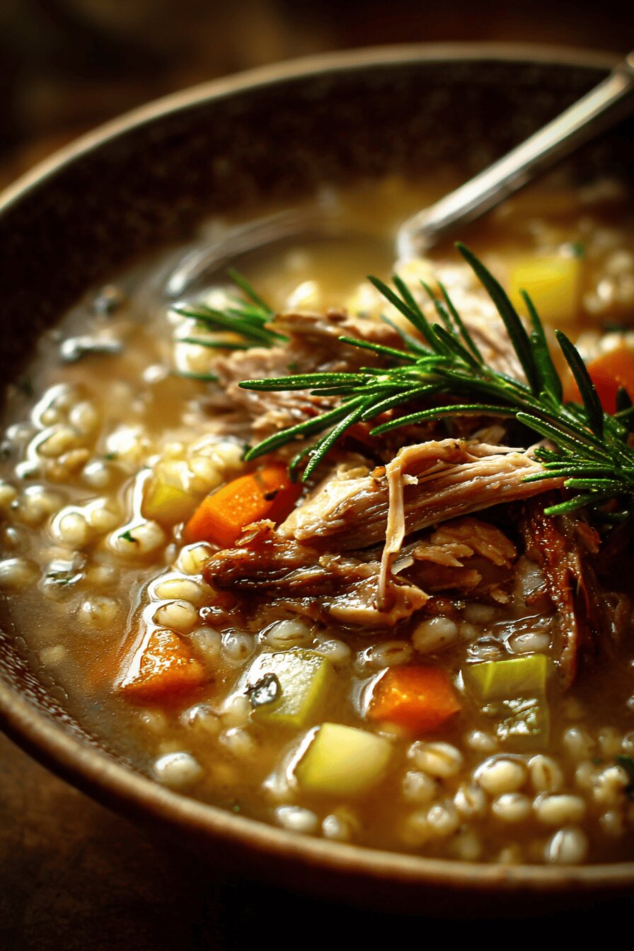A ordem e modo de preparo fazem toda diferença: aquecer cebola no azeite cria uma base doce e aromática, que funde com o sabor do pato no final. A tostagem da cevada prévia evita que o grão fique pastoso, dando textura. Deglacear com vinho não é só pelo sabor extra, mas para levantar todo o gosto que gruda no fundo da panela. O caldo deve estar quente para não travar o cozimento, sempre reforço essa dica por experiência, quem usa caldo frio perde o ponto da sopa. Se usar pressão, cuidado para não passar do ponto, cevada vira mingau e perde a graça. No microondas o confit deve ser apenas aquecido, já no fogo dê preferência a pedaços para evitar desmanchar. O botão do sal é sempre no final, primeiro pela cetonia dos ingredientes, depois que o caldo reduz pode concentrar demais o sal se for adicionado antes. O acompanhamento com pão crocante ou tartines de cogumelos salteados é obrigatório para comer a sopa virando a tigela e sentir tudo. A textura da cevada absorve bem gordura, o aroma do alecrim casa com o pato, experimenta sem medo.