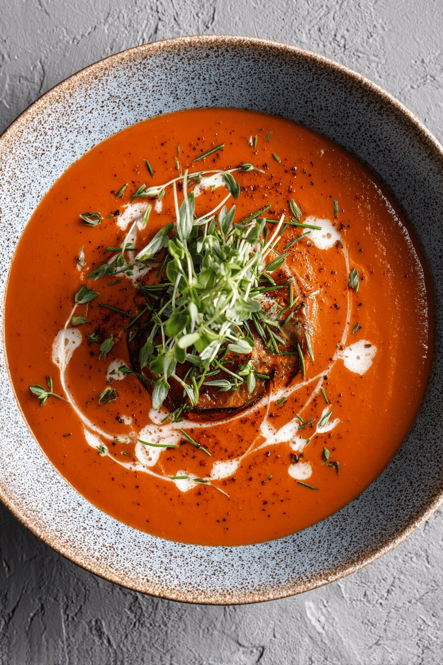 Adicione uma pitada de açúcar ou um pouco de cenoura. Isso ajuda a equilibrar. O fogo pode ter mudado a acidez dos tomates. Teste antes de falar. Sopa de tomate é bem sensível ao sabor. Ajusta durante o preparo.