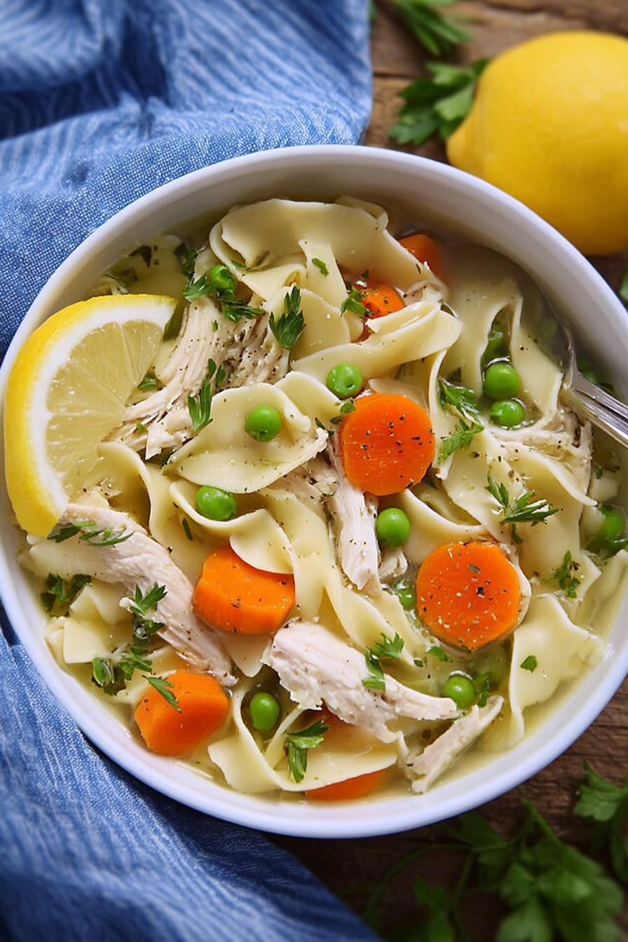 Mix do frango desfiado de rotisserie com caldos aromáticos e legumes frescos. Cozimento lento traz camadas de sabor; macarrão de ovo entra por último, absorvendo caldo quente sem virar mingau. Ervas frescas reforçam o aroma, toque de limão corta gordura, e pimenta branca eleva o conjunto. Texturas variam entre crocância dos legumes e maciez da massa e frango—equilíbrio que aprendi depois de várias tentativas. Fácil e versátil, dá pra trocar o macarrão por arroz ou usar outro tipo de proteína. Tem um quê de conforto sem complicação.