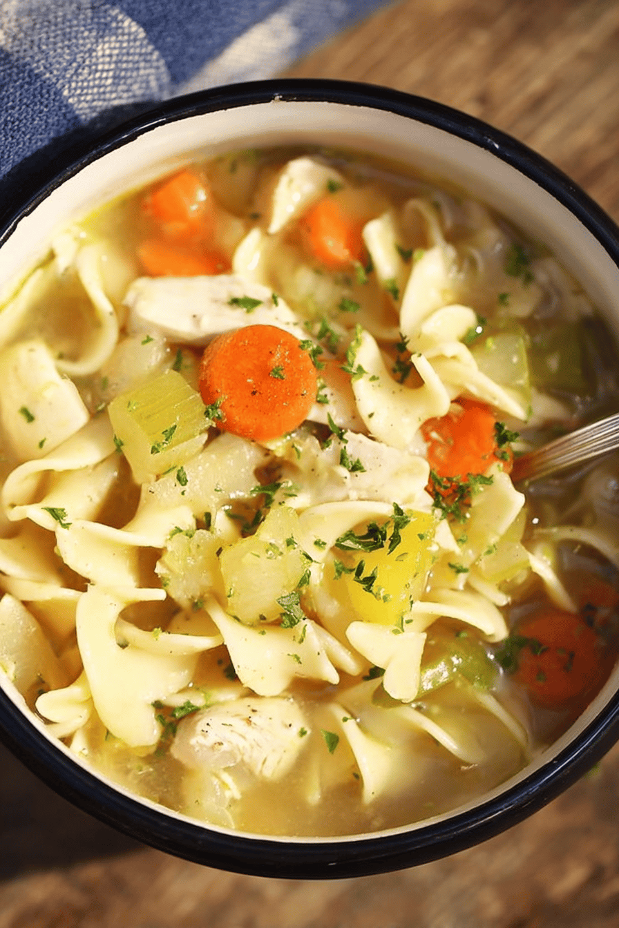 Uma sopa de galinha com macarrão que combina sabores intensos e textura reconfortante. Usamos peito de frango cortado em cubos com tempero simples, cozidos até dourar por fora. Cebola, cenoura e aipo são refogados até a cebola ficar transparente, liberando aroma que segura o prato. Caldo de galinha com um toque de molho inglês e caldo concentrado cria uma base rica. Macarrão entra para absorver sabores, e limão fresco finaliza com acidez equilibrada. Fácil substituição de ingredientes e comandos por olfato e textura fazem esse prato acessível e cheio de personalidade. Serve 7 a 9 pessoas.