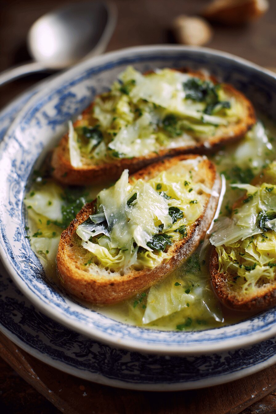 Caldo leve com couve de folha grosso, tostado no forno com fatias de pão antigo e queijo fundido. O toque especial fica por conta do alho assado e do tempero sutil de pimenta do reino. Cozimento suave, sem pressa, para extrair todo o sabor do vegetal. Uma sopa que traz conforto, com textura interessante do pão embebido e queijo dourado. Substituir parte do queijo tradicional por queijo minas padrão dá um frescor. O caldo de legumes pode substituir o de frango sem perder força.