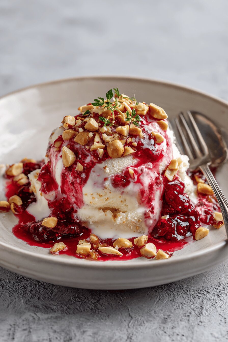 O que realmente importa aqui é controlar o cozimento do creme; mexa sempre, o ponto é perceptível ao olho quando engrossa, formando uma película que aguenta a colher. Cuidado para não ferver demais e queimar, isso deixaria gosto amargo. O resfriamento ideal é lento; refrigerar rápido demais pode causar cristais de gelo e perder textura cremosa. O sorvete deve estar bem firme; taças frias ajudam a manter a temperatura e evitam derretimento. Para a montagem, faça com agilidade para conservar o jogo de temperatura. O creme de manteiga amendoim é o astro, ele deve estar frio, firme, porém fácil de espalhar para envolver o sorvete. O toque do crocante e da geleia assada fecha tudo. Se quiser incrementar, uma folha de hortelã lavada na hora joga frescor no conjunto. Também testei reduzir o leite para engrossar mais rápido, mas perde o equilíbrio, fica aquela sensação pesada. Seguir o ritmo dos ingredientes, tocar e ver com os olhos são meus melhores aliados.