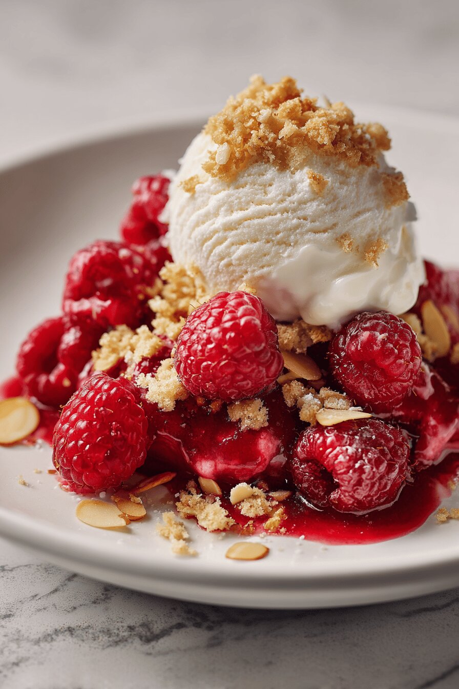 - Termino salpicando por cima o crumble crocante — contraste essencial, calorado do crumble e frio da sobremesa fazem mágica na textura.