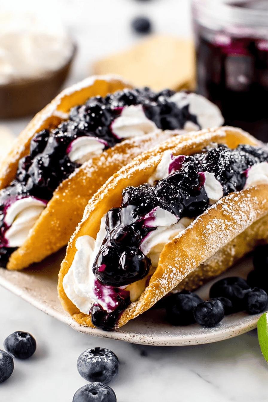 Já testei uns doces curiosos na cozinha, e poucos saem dessa zona de risco de ’tá bom, mas poderia ser melhor’ como esses tacos de cheesecake com mirtilo. A mistura do cremoso do recheio com a crocância da tortilla frita dá uma dança perfeita na boca. O truque está em fritar no ponto certo, dourando na medida pra ter formato e textura que aguente o recheio. Mudar alguns ingredientes me ajudou a deixar o resultado menos açucarado, mais equilibrado. É prato pra quem quer algo diferente, não só jogado numa sobremesa comum. Vale segurar a ansiedade na hora de montar, senão o taco perde o charme crocante e fica melado rápido.