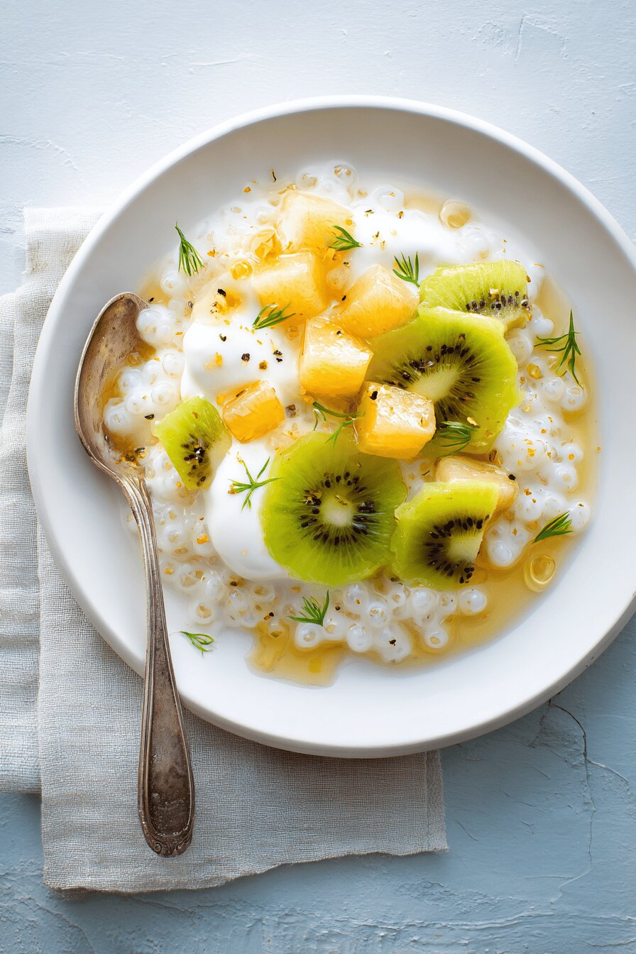 Tapioca, ingrediente típico brasileiro, ganha charme internacional quando misturada ao aroma sutil do chá jasmim e à doçura fresca do kiwi dourado. Em minhas tentativas pela cozinha, percebi que a aba do cozimento é crucial para não errar na textura – a tapioca precisa estar translúcida e cremosa, nunca grudenta ou dura. A infusão do jasmim traz uma camada aromática delicada que casa bem com o frescor ácido e o toque adocicado do kiwi. Texturas distintas, aromas florais e frutas tropicais formando uma sobremesa leve, sem glúten e perfeita para dias quentes ou quando quero algo simples para impressionar. Mel no final? Ah, isso mudou todo o jogo, trazendo brilho e aquele mínimo doce que suaviza o contraste do kiwi.